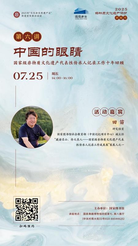 2025年非物质文化遗产保护讲座月·第六讲活动海报。(国家图书馆供图) 文源:中国新闻出版广电网 作者:李雪昆